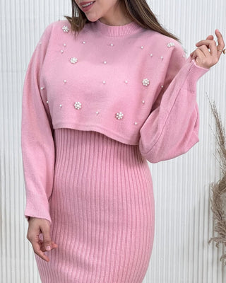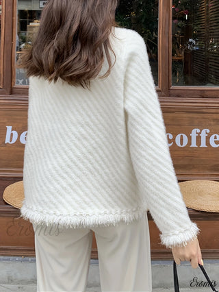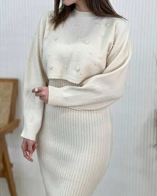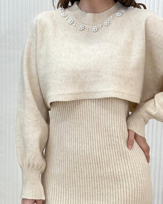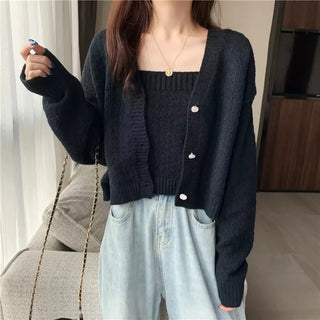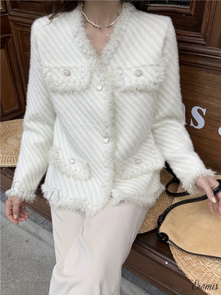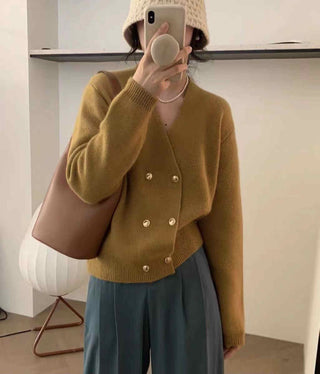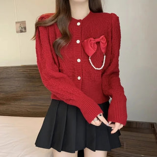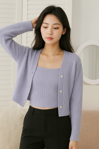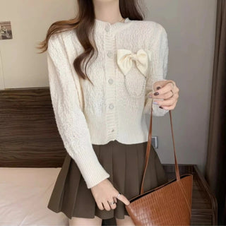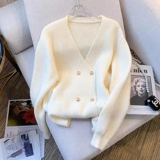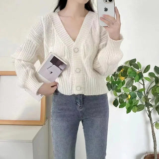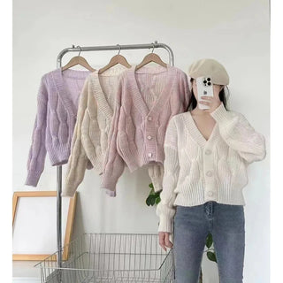 Amelie Cozy Cable-Knit Pearl Buttons Cardigan