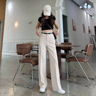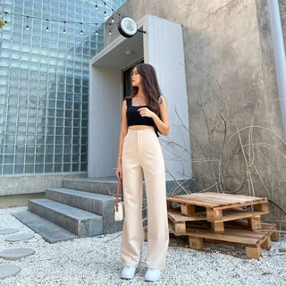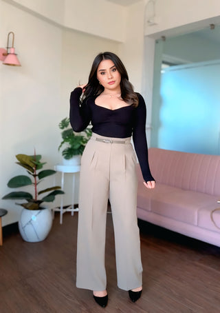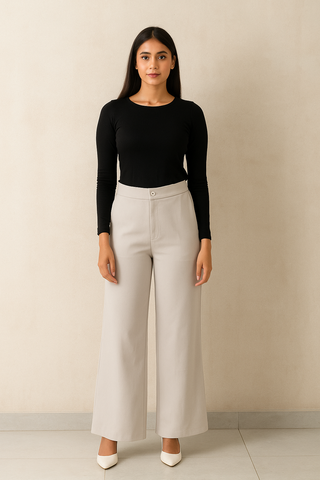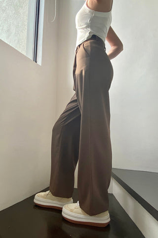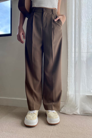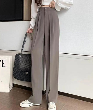 HIGH WAIST STRAIGHT LEG BUTTON FORMAL TROUSERS