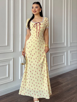 Amaya Chic Square-Neckline Floral Maxi Dress