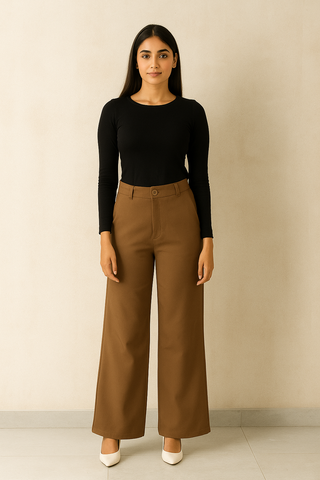 PLEATED SOLID COLOUR HIGH-WAISTED STRAIGHT FIT TROUSER
