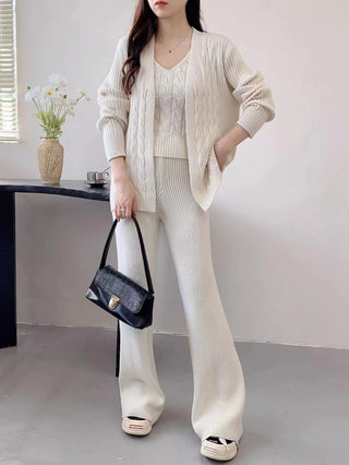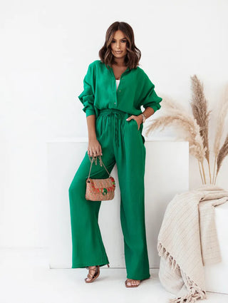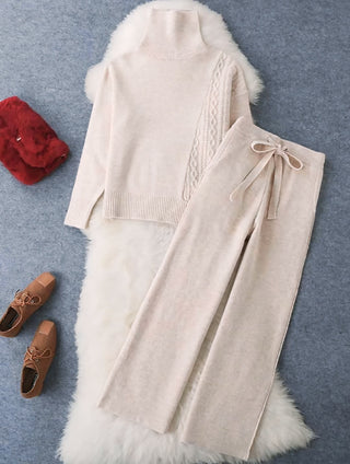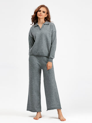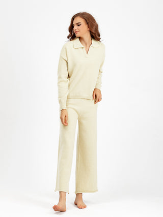 Anne long sleeves polo sweater & wide leg pants two pieces set