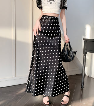 Midnight Dot Satin Midi Skirt