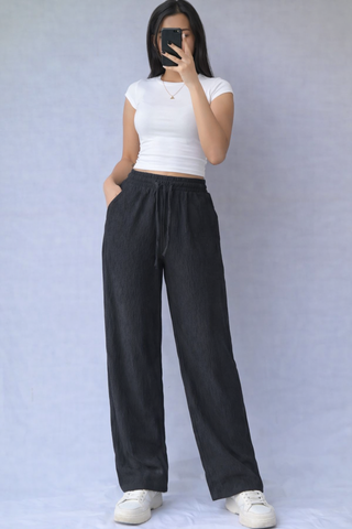 PLEATED SOLID COLOUR HIGH-WAISTED STRAIGHT FIT TROUSER